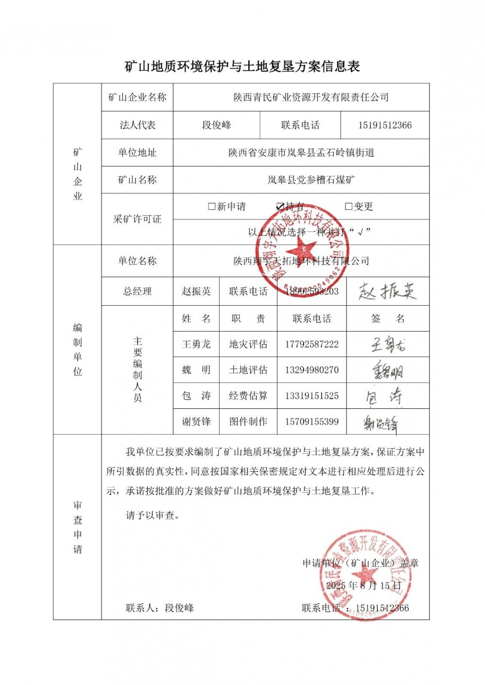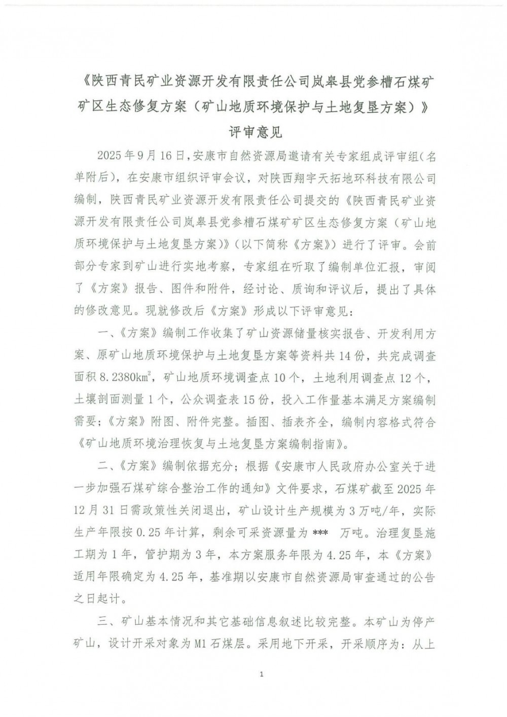 根據《礦山地質(zhì)環(huán)境保護規定》《土地復墾條例》等有關(guān)規定,按照陜西省國土資源廳《關(guān)于做好礦山地質(zhì)環(huán)境保護與土地復墾方案編報有關(guān)工作的通知》(陜國土資環(huán)發(fā)〔2017〕11號)和安康市國土資源局《關(guān)于印發(fā)安康市市級發(fā)證礦山地質(zhì)環(huán)境保護與土地復墾方案審查工作方案的通知》(安國土資發(fā)〔2017〕236號)要求,對《陜西青民礦業(yè)資源開(kāi)發(fā)有限責任公司嵐皋縣黨參槽石煤礦礦山地質(zhì)環(huán)境保護與土地復墾方案》進(jìn)行了審查,現將擬同意通過(guò)方案及評審意見(jiàn)進(jìn)行公示。