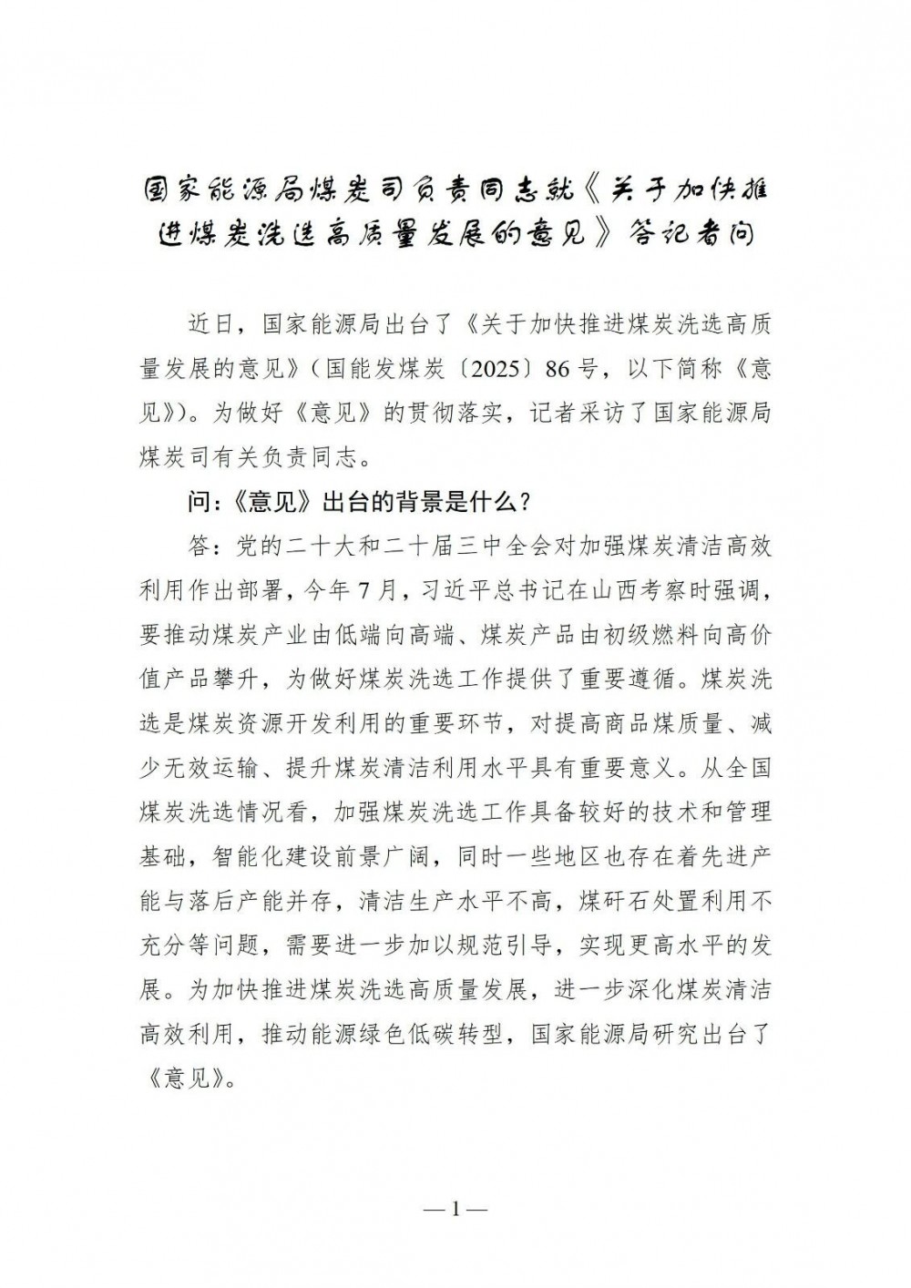 國家能源局關(guān)于加快推進(jìn)煤炭洗選高質(zhì)量發(fā)展的意見(jiàn)