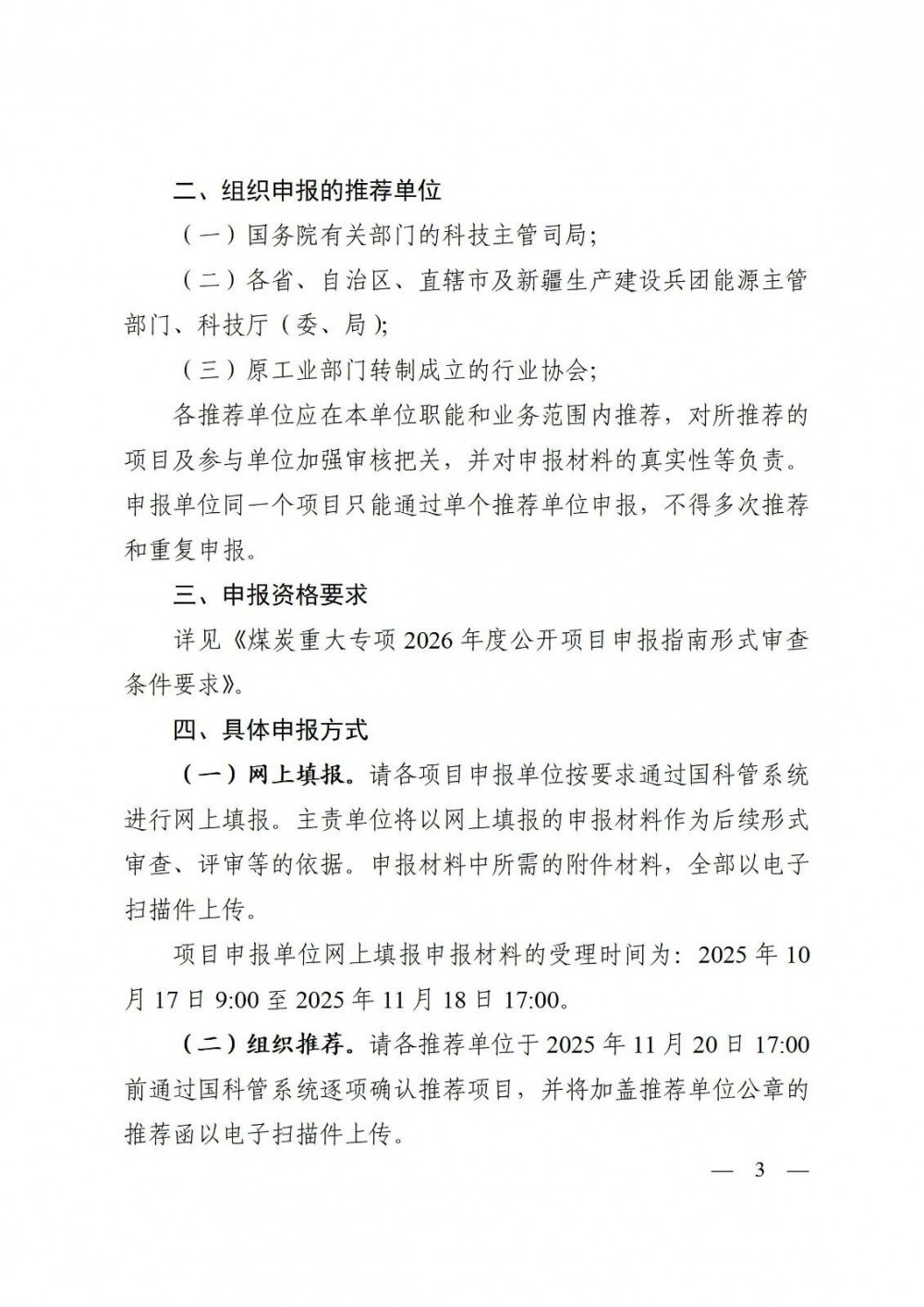 附件:關(guān)于發(fā)布煤炭重大專(zhuān)項2026年度公開(kāi)項目申報指南的通知