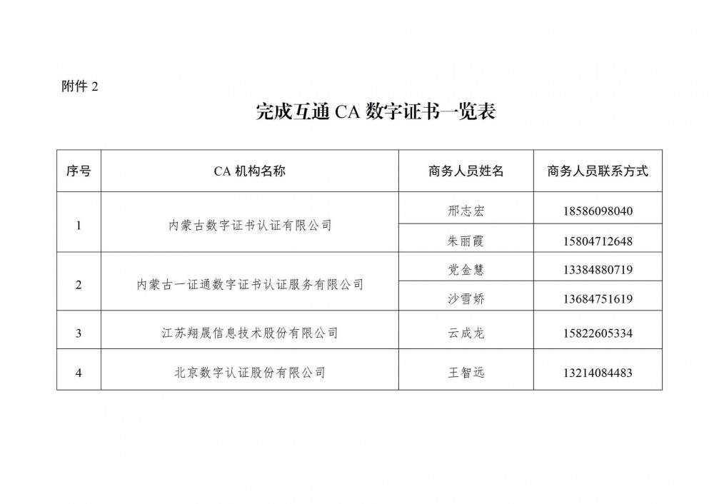 (二)完成互通CA數字證書(shū)一覽表(格式)