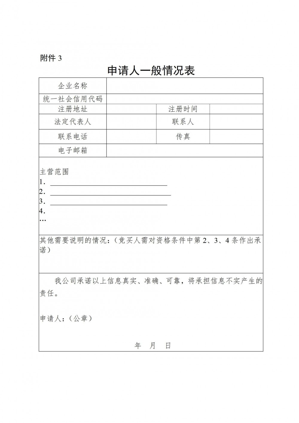 1.申請人一般情況表(加蓋公章的彩色掃描件);