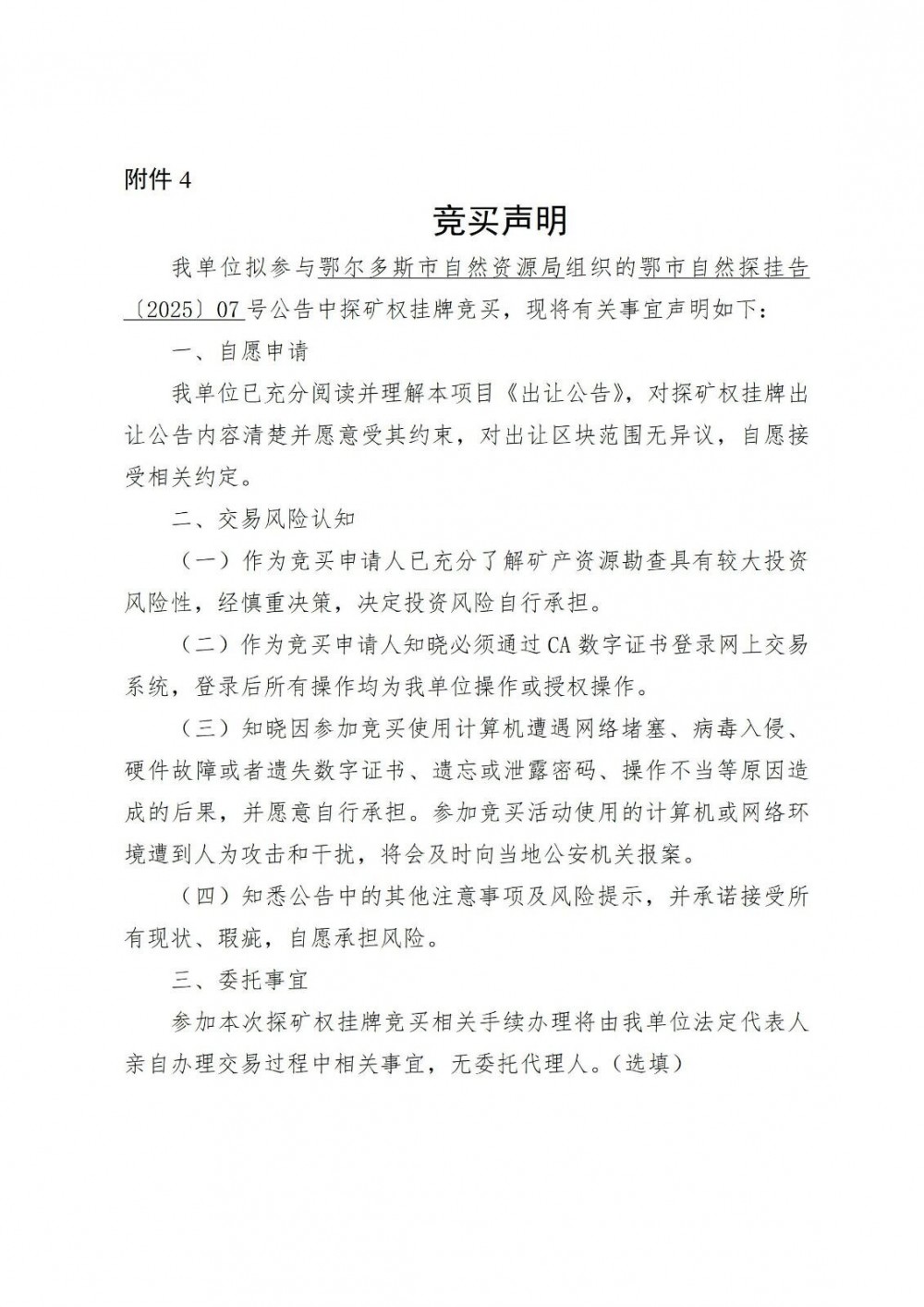 (九)本次出讓公告其他未盡事宜,由鄂爾多斯市自然資源局負責解釋和通知。