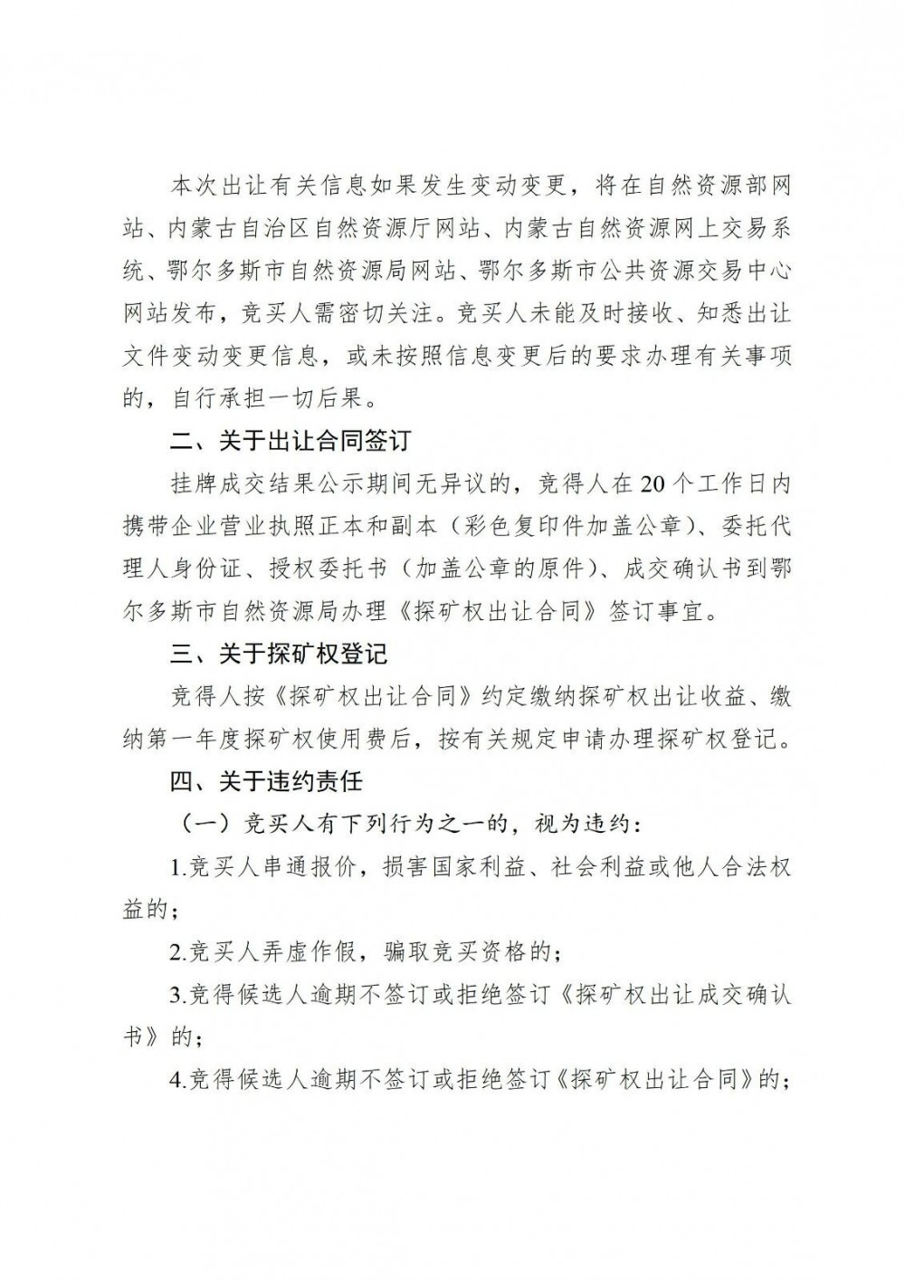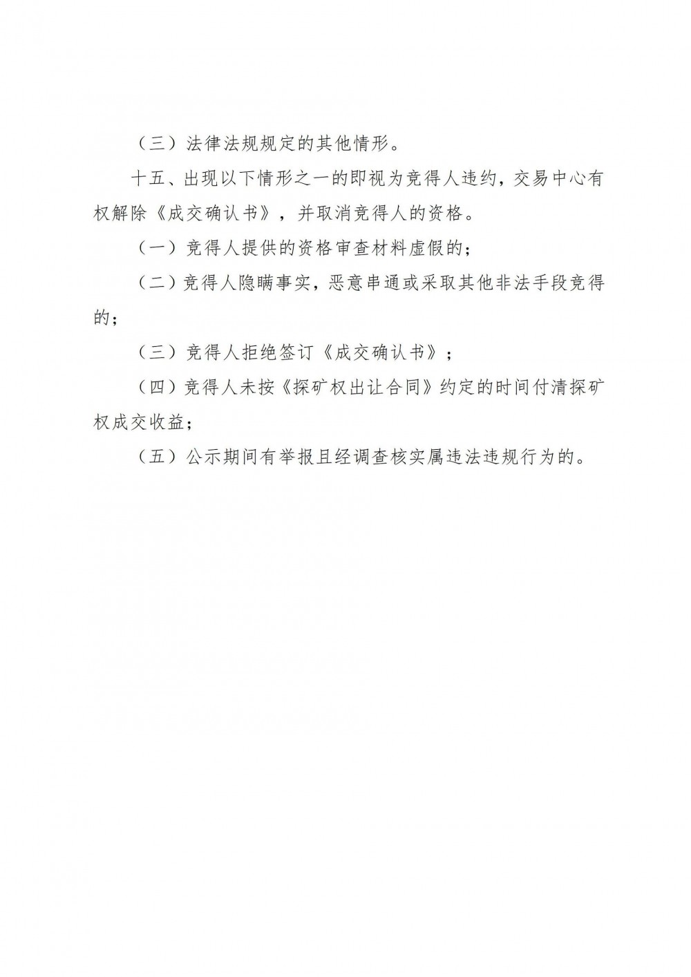 3.被確認為競得人后,未按掛牌出讓公告等文件要求簽訂《成交確認書(shū)》《探礦權出讓合同》的。
