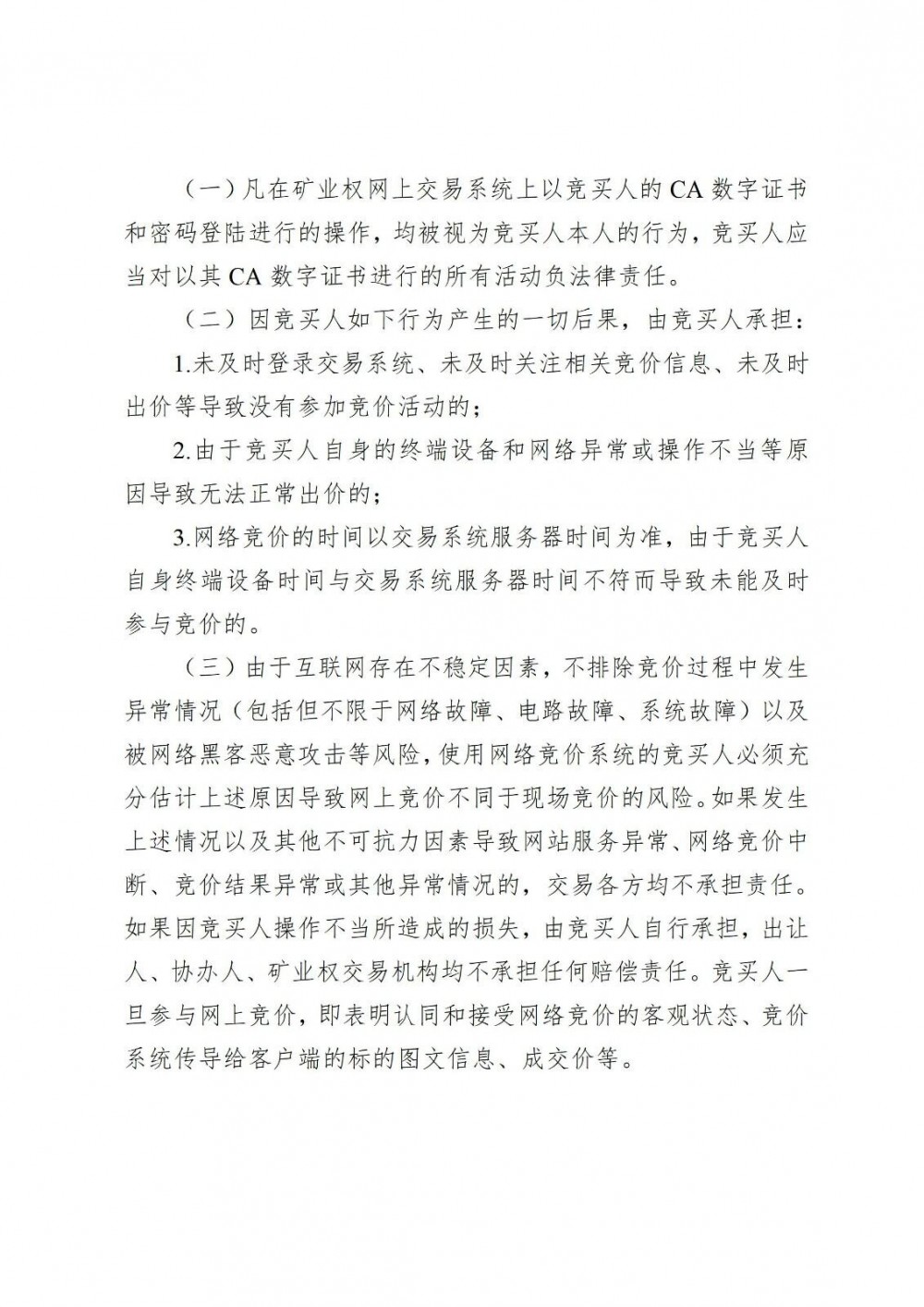 (七)競買(mǎi)人在參與網(wǎng)上公開(kāi)交易活動(dòng)前,應當及時(shí)檢查所使用的計算機系統,若計算機系統遭遇網(wǎng)絡(luò )安全事故(包括黑客攻擊、病毒入侵等)、網(wǎng)絡(luò )堵塞和系統硬件故障等導致不能正常登錄交易系統進(jìn)行競買(mǎi)申請、網(wǎng)上報價(jià)、限時(shí)競價(jià)的,產(chǎn)生的后果由競買(mǎi)人自行承擔。