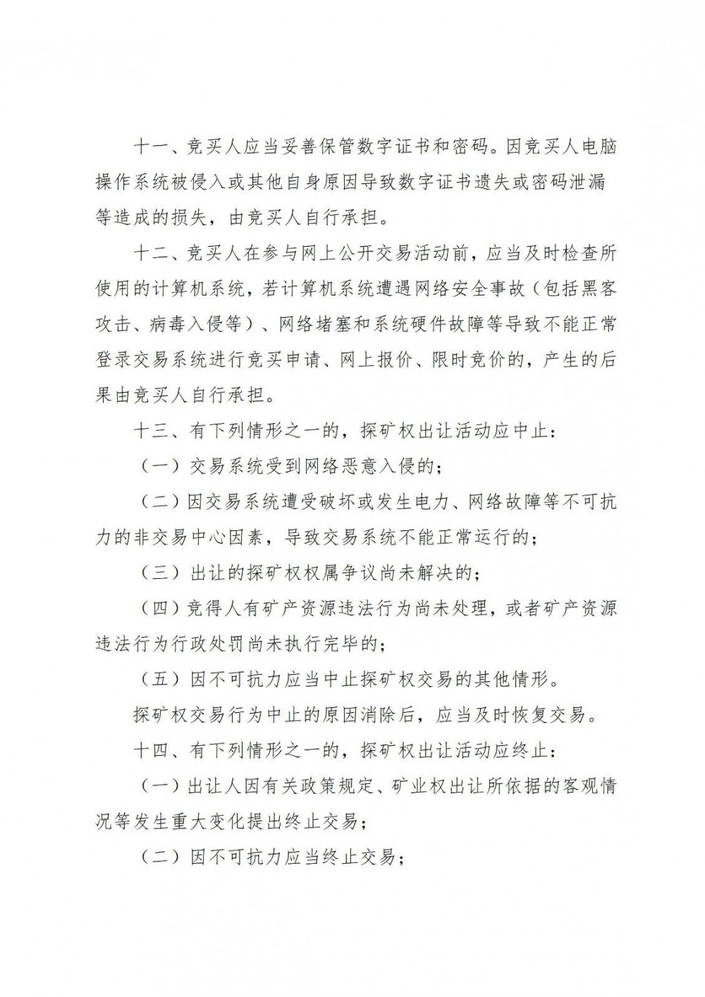 5.因不可抗力應當中止探礦權交易的其他情形。